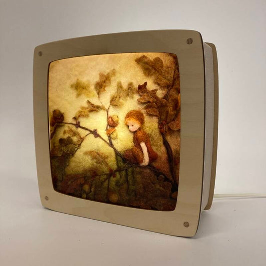 Ann Galland | Seizoensplaat | Kabouter met Roodborstje