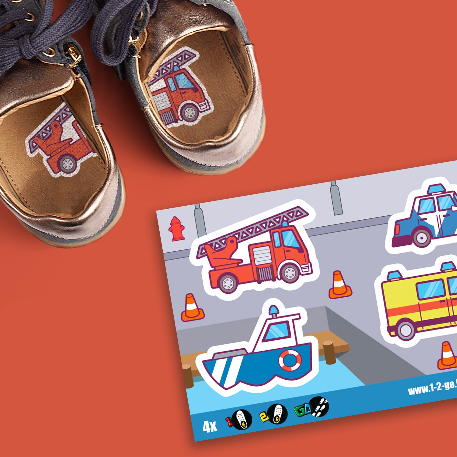 Laat je kind vol zelfvertrouwen zelf zijn schoenen aantrekken met deze vrolijke schoenstickers! Met herkenbare hulpvoertuigen zoals een brandweerwagen, een ambulance een politiewagen en een politieboot, worden de schoenen niet alleen juist aangedaan – ze toveren ook meteen een glimlach op het gezicht.