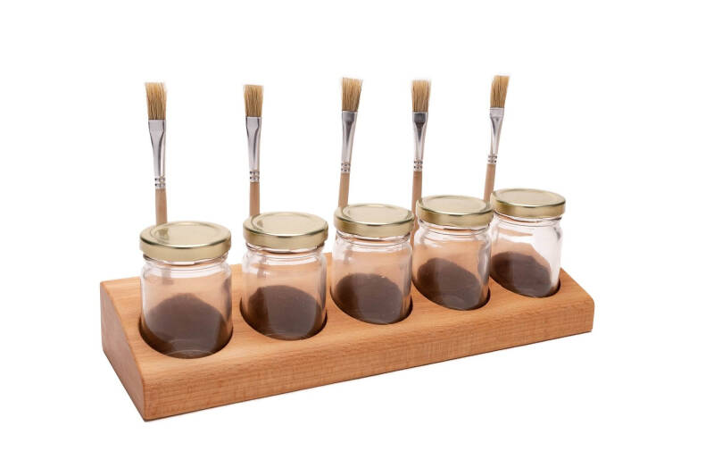 Een prachtig handgemaakte verfpot houder van Grennn waarin je verf én kwasten samen overzichtelijk opgeborgen zijn. Met de hand vervaardigd uit massief beukenhout en voorzien van vijf glazen potjes met deksel én vijf Grennn kwastjes. Ideaal voor creatieve kinderen die houden van structuur en vrijheid tegelijk.