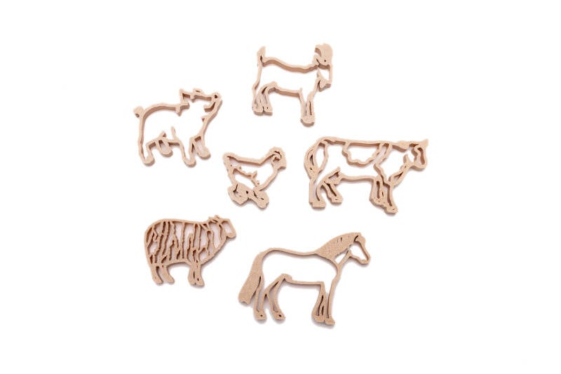 De set bevat maar liefst zes dieren: kip, koe, paard, geit, schaap en varken. Gemaakt van gerecycled houtzaagsel en biologisch afbreekbaar plastic van plantaardige oorsprong. Een bewuste keuze voor duurzaam en verantwoord speelgoed. De uitstekers worden geleverd in een handig linnen zakje.