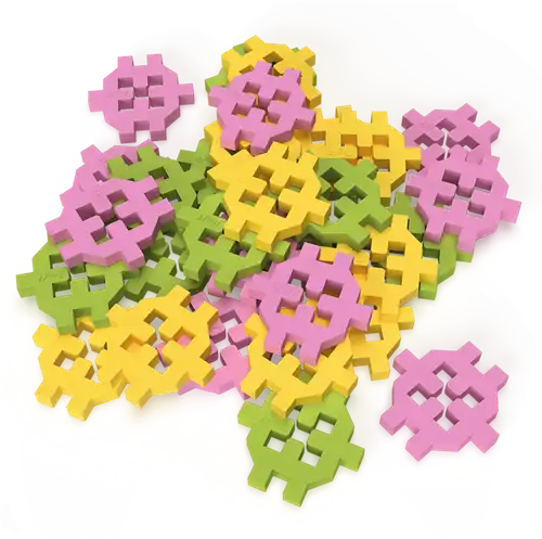 - Inhoud: Verschillende sets (Basic, Pocket, Extra), elk met diverse blokvormen en elementen