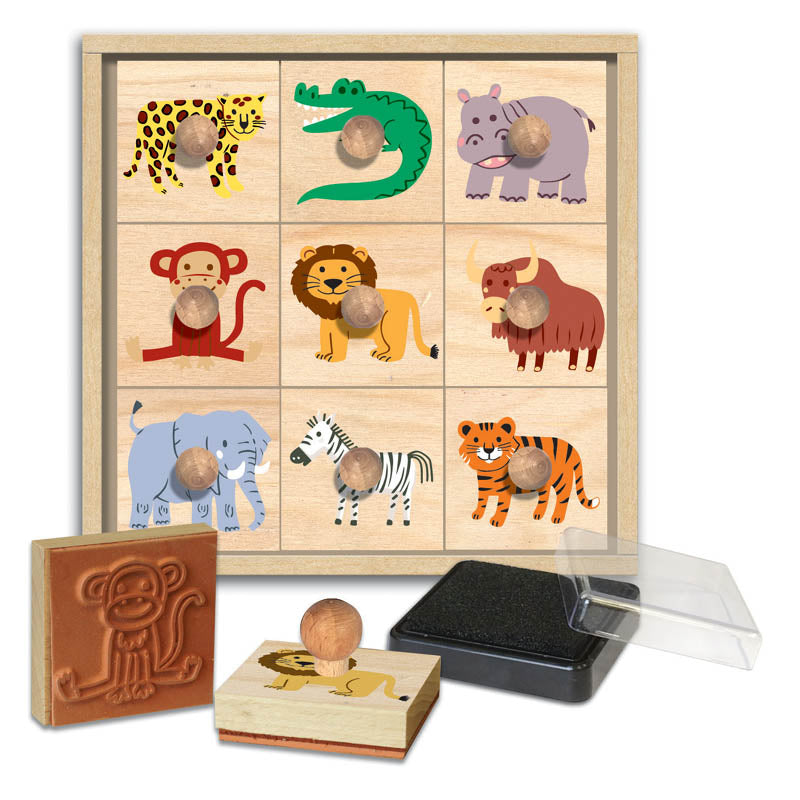Een avontuurlijke stempelset vol wilde dieren en creatieve mogelijkheden.