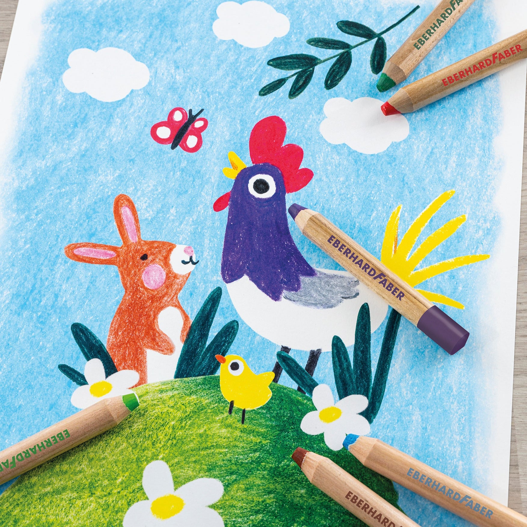De perfecte eerste kleurpotloden voor jouw peuter! Dankzij het extra dikke formaat zijn deze potloden makkelijk vast te houden door kleine kinderhandjes. Ze combineren drie functies in één: kleurpotlood, waskrijtje en aquarelpotlood. Ideaal voor de eerste creatieve avonturen van je kind.