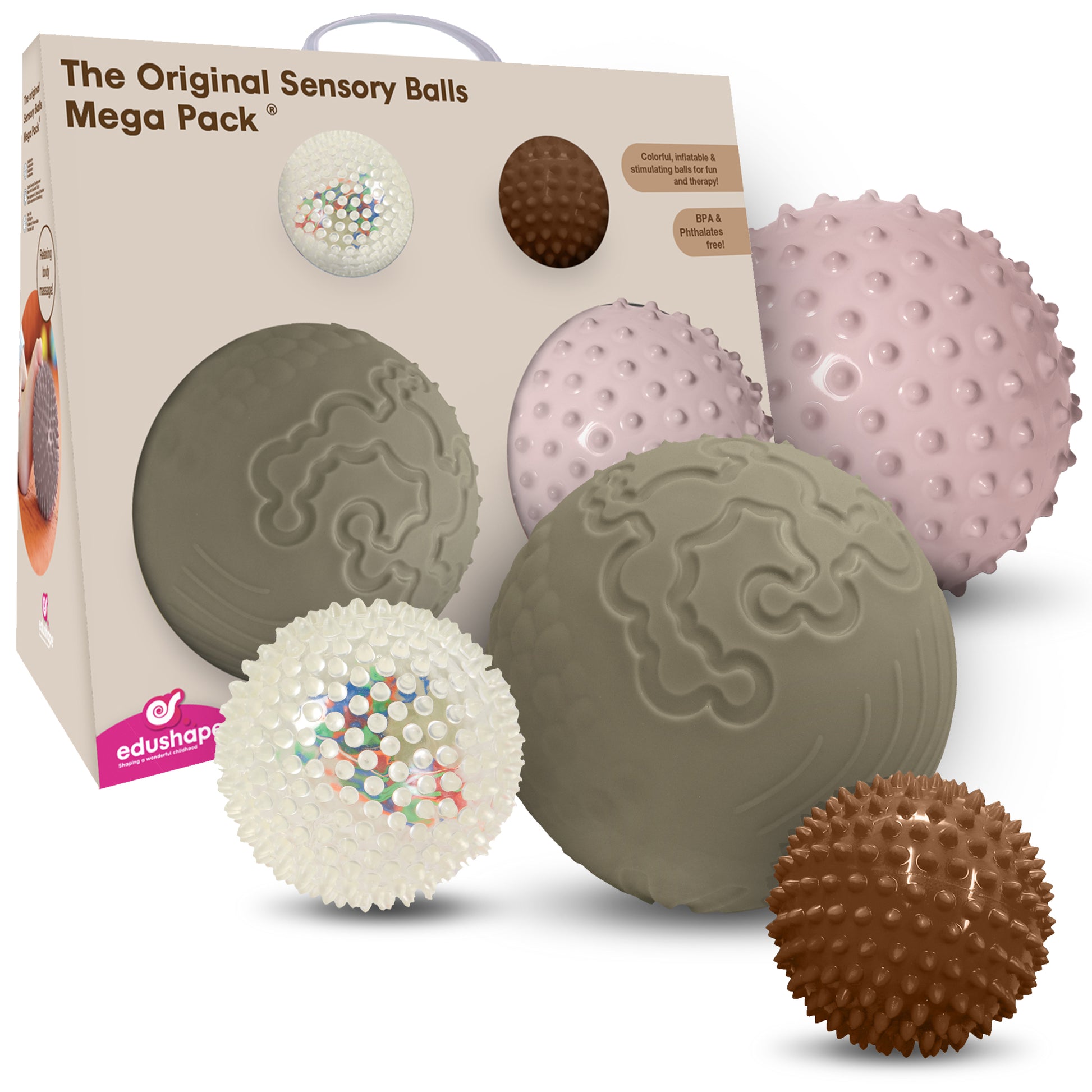 Een vrolijke set sensorische ballen in verschillende groottes en texturen, perfect afgestemd op de ontwikkeling van je baby. Dankzij de grappige vormen en voelbare structuren worden baby's uitgenodigd om te grijpen, rollen en ontdekken. Ideaal voor gebruik tijdens tummytime en andere spelmomenten.
