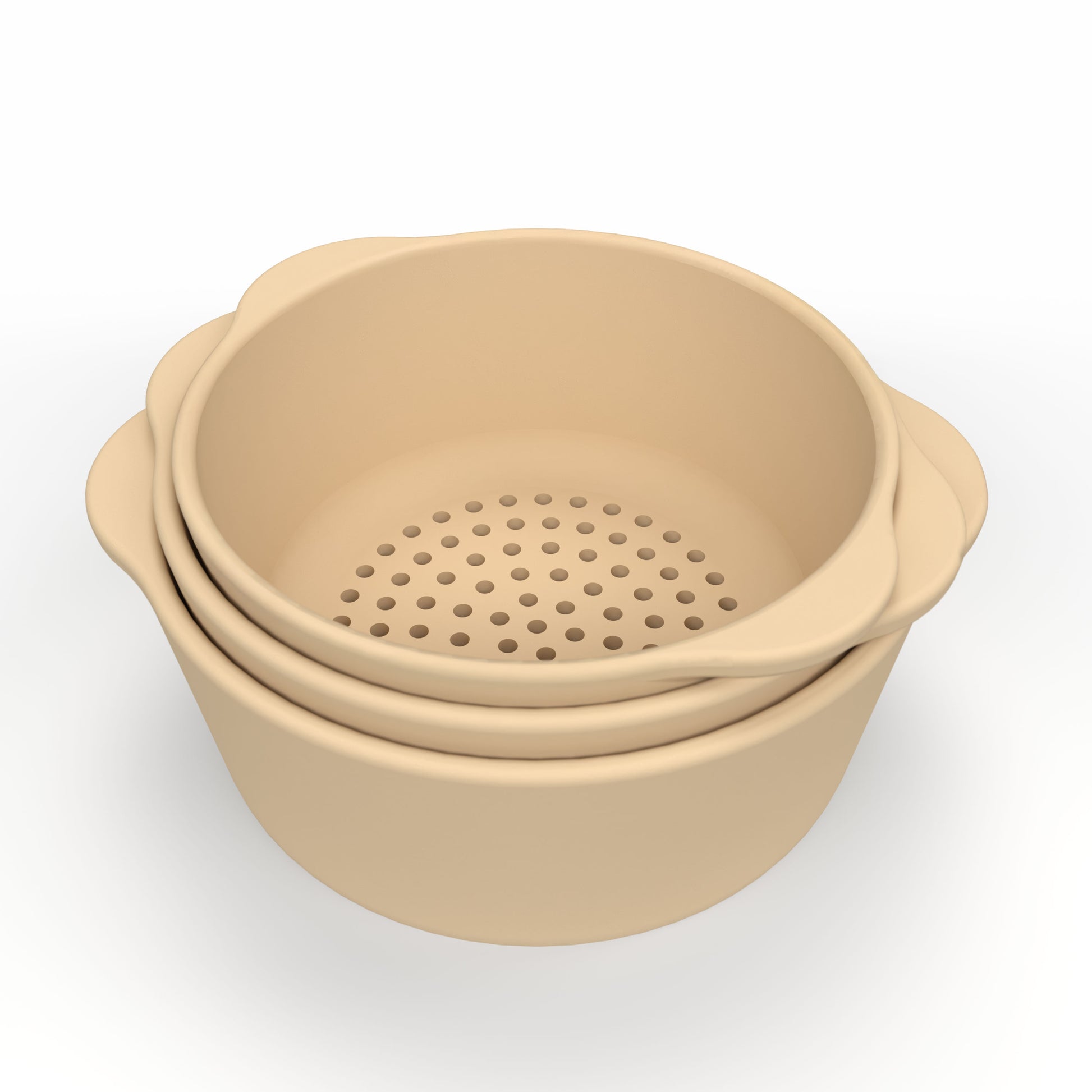 - Slim ontwerp – schaaltjes en zeef zijn stapelbaar voor eenvoudig opbergen