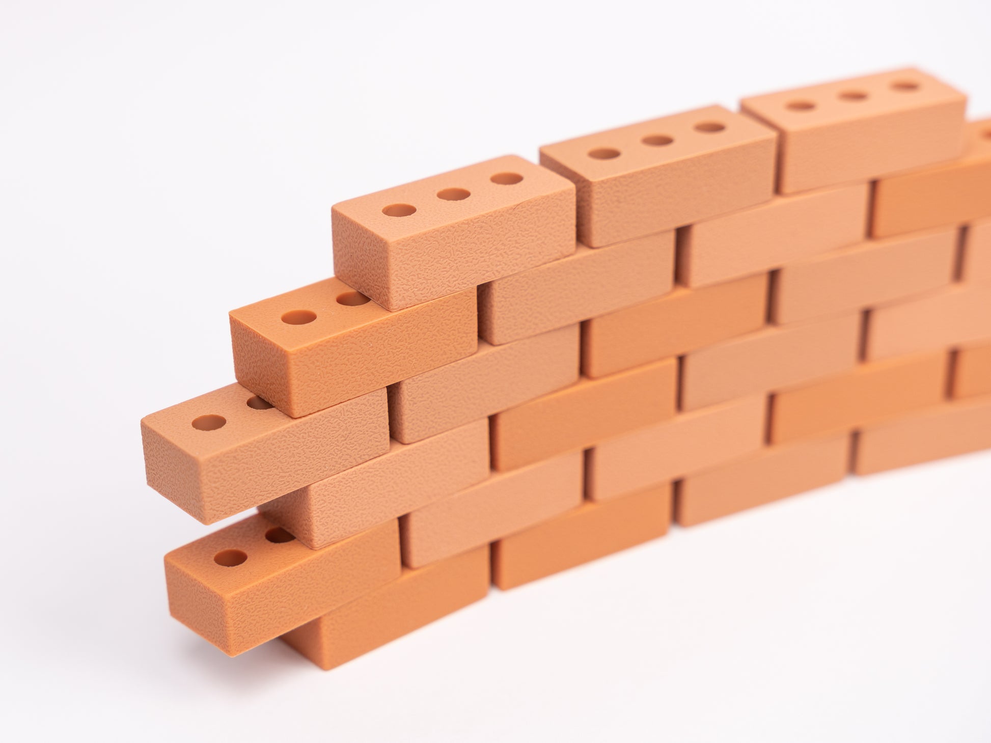 De set van 25 stenen is zorgvuldig ontworpen om het uiterlijk van echte bakstenen na te bootsen, maar dan in een veilige, zachte en duurzame uitvoering. Ze zijn gemaakt van hoogwaardige, niet-giftige siliconen, waardoor ze veilig, stevig en prettig hanteerbaar zijn voor jonge kinderen.