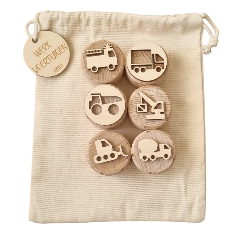 Kiddi | Houten Stempelset | Werkvoertuigen