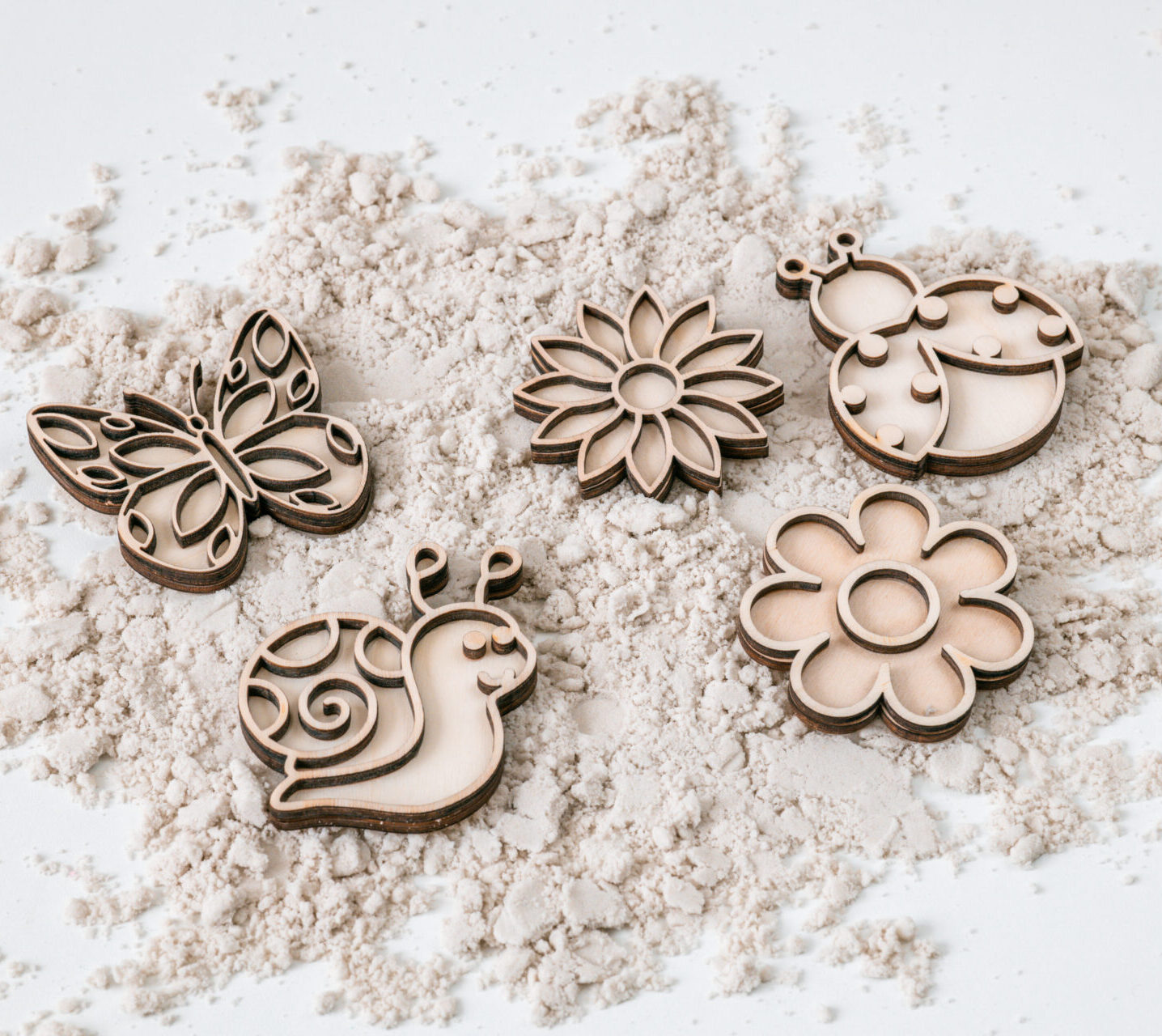 Laat je kind de vormen vullen met rijst, sensorische parels of andere natuurlijke materialen, of gebruik ze om mooie afdrukken te maken in kinetisch zand of klei. Zo stimuleer je spelenderwijs de fijne motoriek, concentratie en zintuiglijke ontwikkeling.
