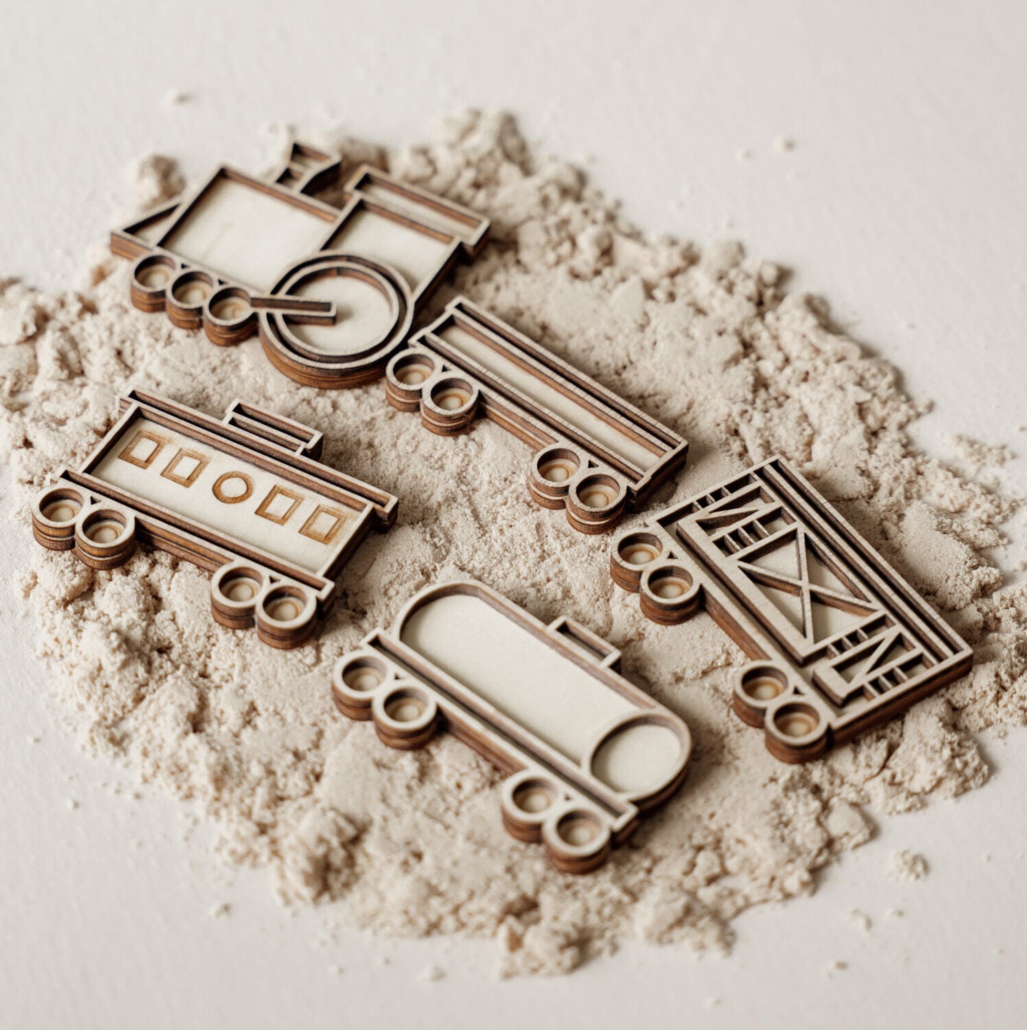 Laat je kind de vormen vullen met rijst, sensorische parels of andere natuurlijke materialen, of gebruik ze om mooie afdrukken te maken in kinetisch zand of klei. Zo stimuleer je spelenderwijs de fijne motoriek, concentratie en zintuiglijke ontwikkeling.