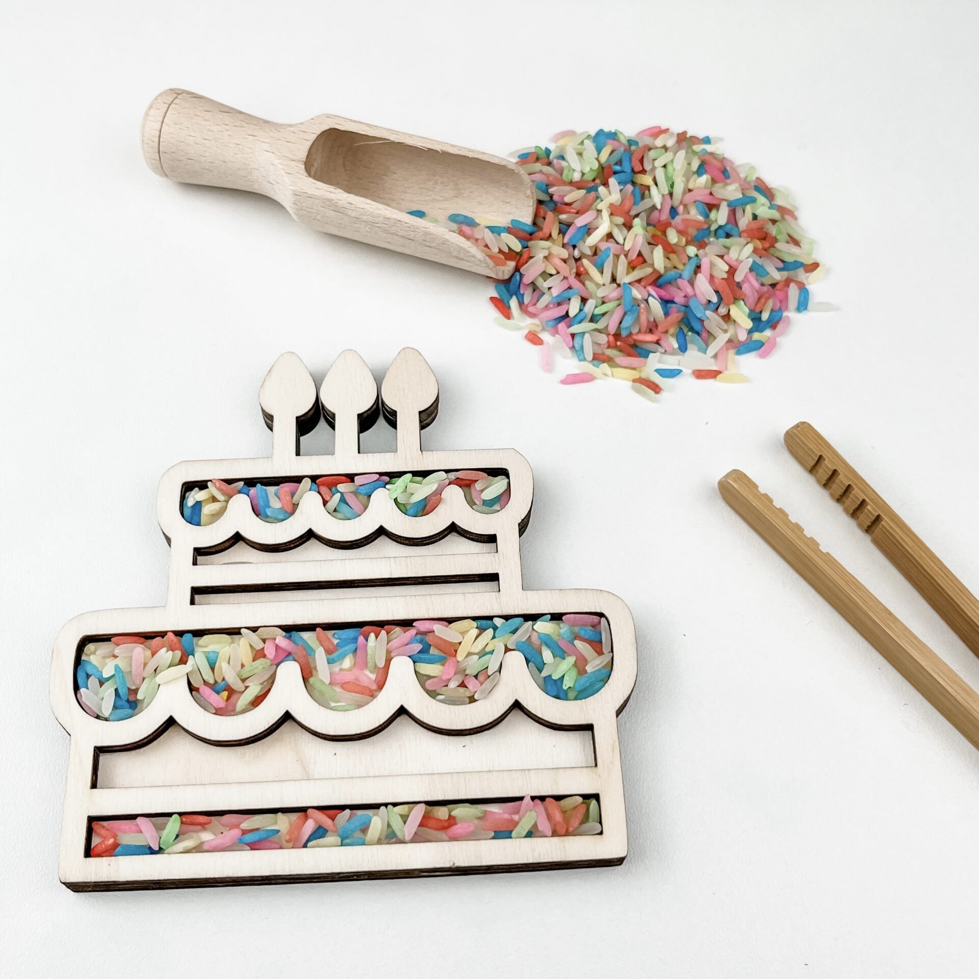 Deze houten vulvorm is een prachtige toevoeging aan elk sensorisch spel en past perfect bij een speelbak. Laat je kind de vorm vullen met rijst, sensorische parels, speelzand of andere natuurlijke materialen en ervaar hoe spel, motoriek en verbeelding samenkomen.