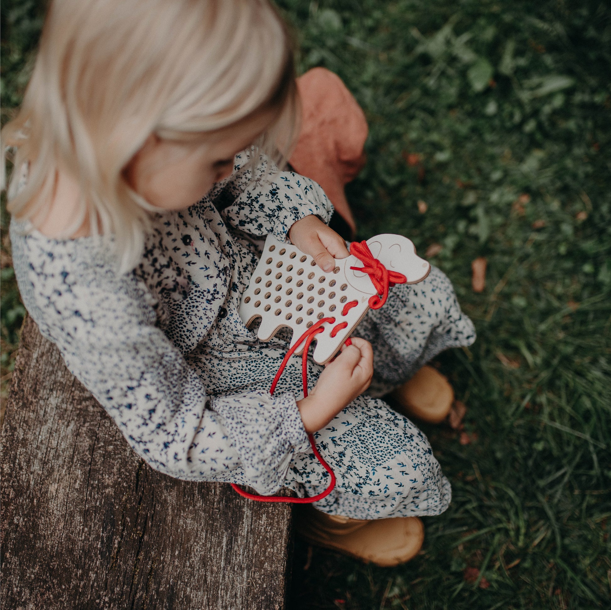 Met dit grotere rijgbord kunnen kinderen zich helemaal uitleven in rijgplezier. Het uitdagende formaat en de speelse vorm nodigen uit om de veter keer op keer door de openingen te halen. Zo ontwikkelen ze spelenderwijs hun fijne motoriek, concentratie en handvaardigheid. Ideaal voor kinderen die toe zijn aan iets meer uitdaging!
