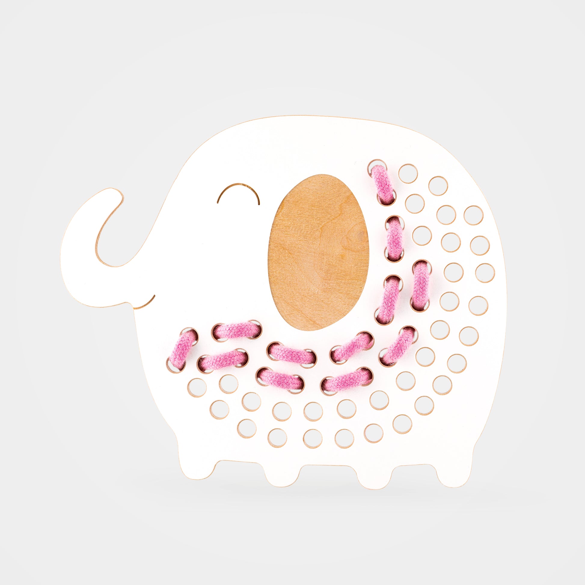 Met dit grotere rijgbord kunnen kinderen zich helemaal uitleven in rijgplezier. Het uitdagende formaat en de speelse vorm nodigen uit om de veter keer op keer door de openingen te halen. Zo ontwikkelen ze spelenderwijs hun fijne motoriek, concentratie en handvaardigheid. Ideaal voor kinderen die toe zijn aan iets meer uitdaging!