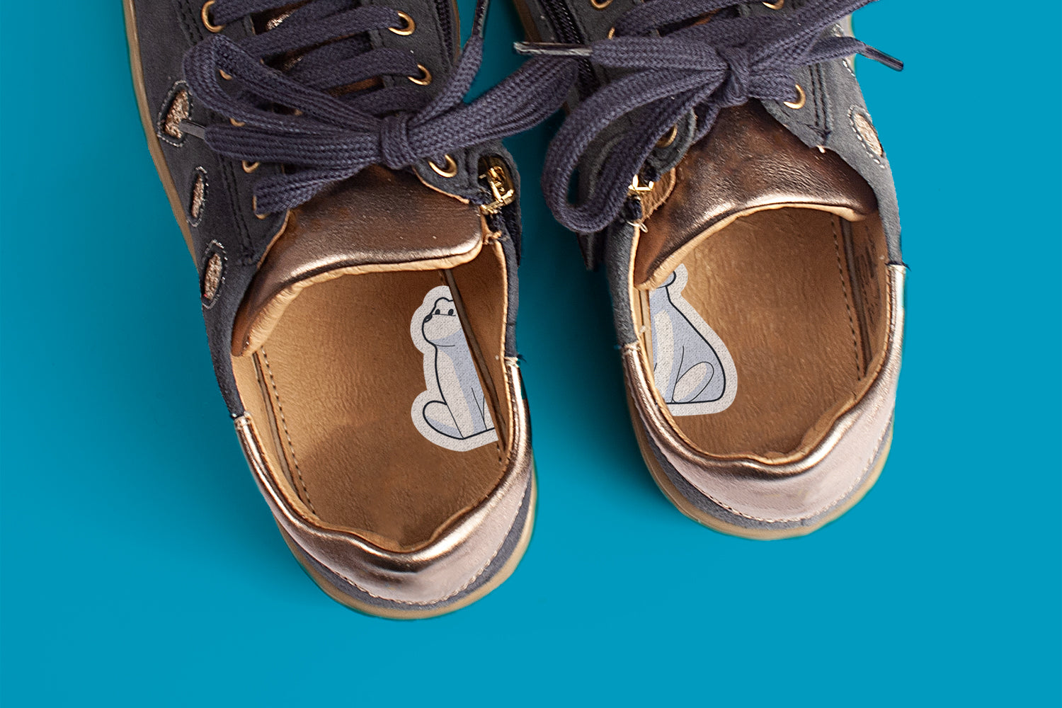 De stickerhelften vormen samen een figuurtje wanneer de schoenen goed staan. Zo leert je kind spelenderwijs het verschil tussen links en rechts, en voorkom je ‘bananenvoeten’. Gemaakt van zacht textielmateriaal voor extra comfort, zelfs als je kind zonder sokken in z’n schoenen stapt.