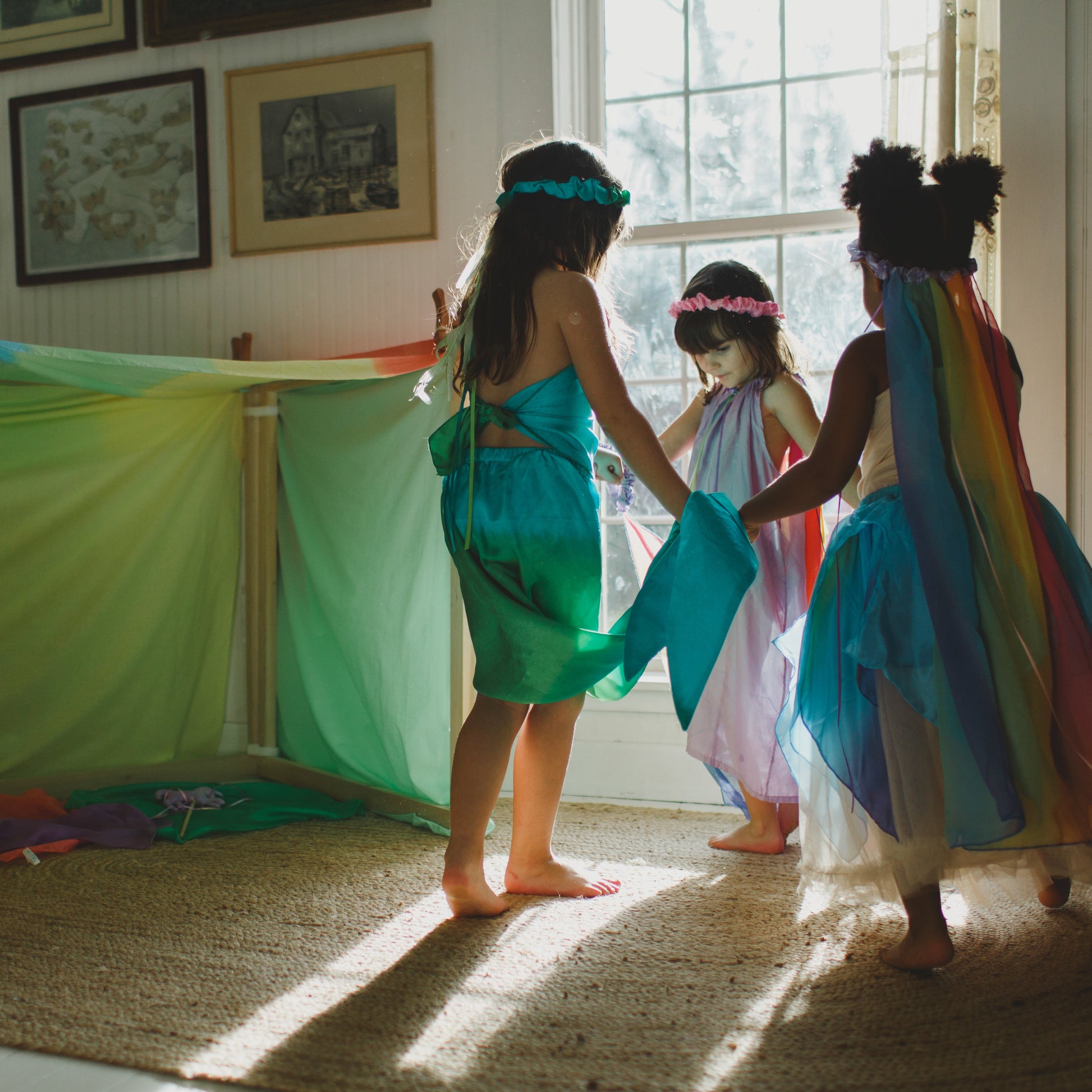 Een prachtige grote katoenen speeldoek in een levendige regenboogkleur. Kinderen kunnen hem gebruiken bij verkleden, een hut of fort bouwen, als gordijn of afscheiding in een ruimte, maar ook als stijlvol tafelkleed of aankleding tijdens speciale gelegenheden. Deze speeldoek versterkt creativiteit, verbeelding, onafhankelijkheid én zintuiglijke beleving. Dankzij het open‑ended karakter bruikbaar voor jaren, in allerlei speelsituaties.