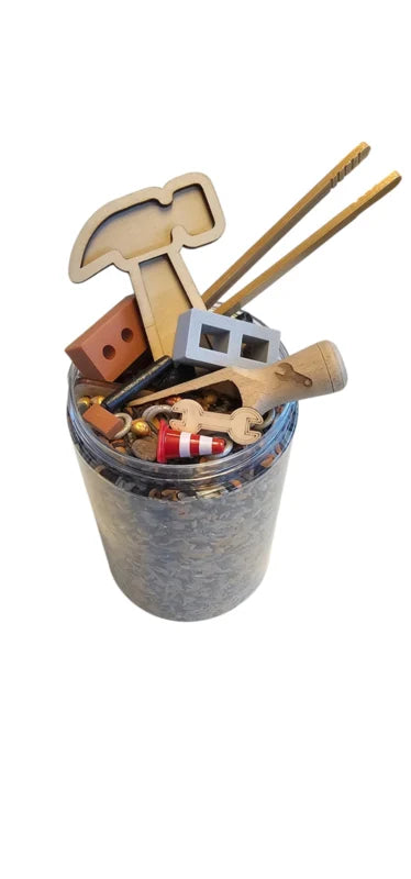 Zin in een kant-en-klaar speelavontuur? Met de Pour & Play sensorische pot heb je alles bij de hand voor urenlang fantasierijk en zintuiglijk spel. Elke pot is zorgvuldig samengesteld rond een bepaald thema en bevat een kleurrijke mix van sensorisch vulmateriaal (zoals rijst, pasta of kikkererwten), aangevuld met bijpassende houten figuurtjes, loose parts en andere verrassingen.