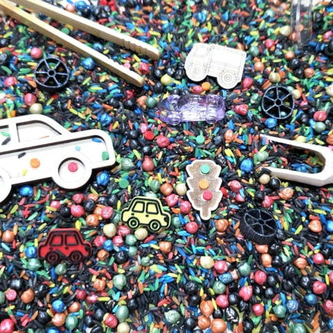 Zin in een kant-en-klaar speelavontuur? Met de Pour & Play sensorische pot heb je alles bij de hand voor urenlang fantasierijk en zintuiglijk spel. Elke pot is zorgvuldig samengesteld rond een bepaald thema en bevat een kleurrijke mix van sensorisch vulmateriaal (zoals rijst, pasta of kikkererwten), aangevuld met bijpassende houten figuurtjes, loose parts en andere verrassingen.