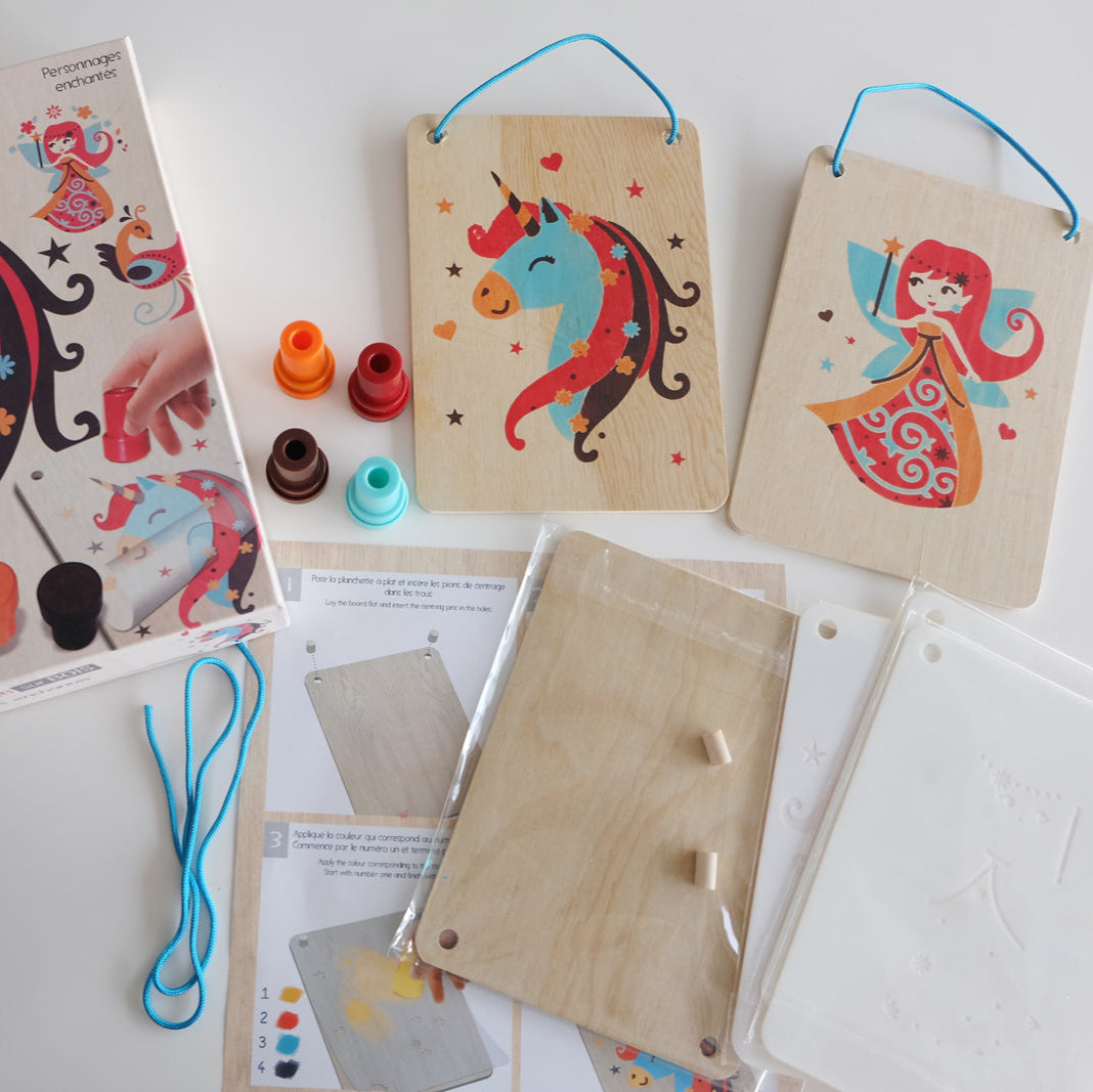 Tamponneren in thema betoverende karakters – creatieve houten kunstwerken voor kinderen