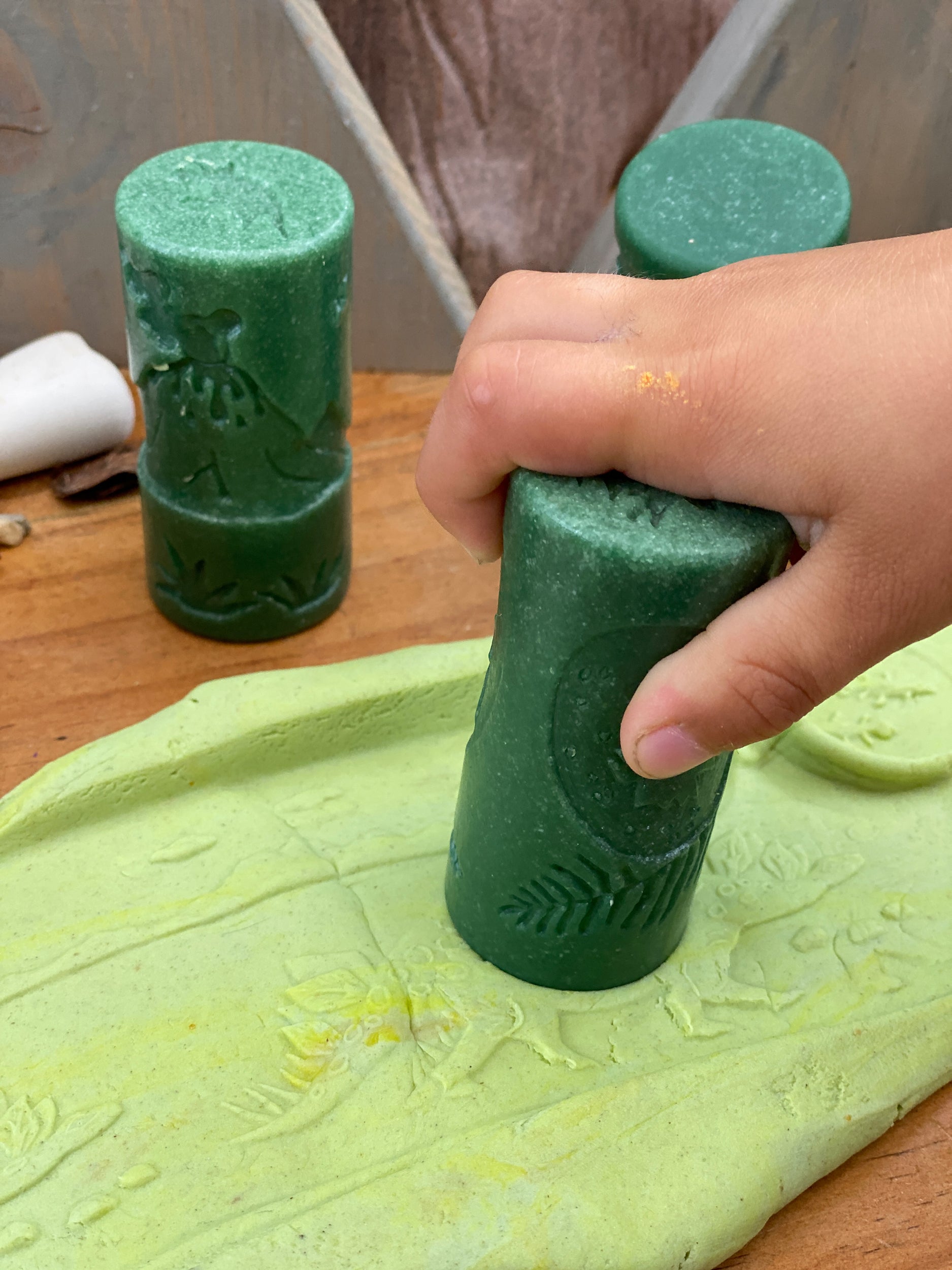 Een geweldige set rollers met afdrukken van dino's. Laat je kind onderzoeken wat de rollers kunnen. Stempel ze in de klei of kinetisch zand, rol afdrukken en maak zo prachtige taferelen en verhalen. Je kind ontwikkeld hiermee de fijne motoriek en kan experimenteren met druk uitoefenen op de rollers en wat er dan gebeurd.