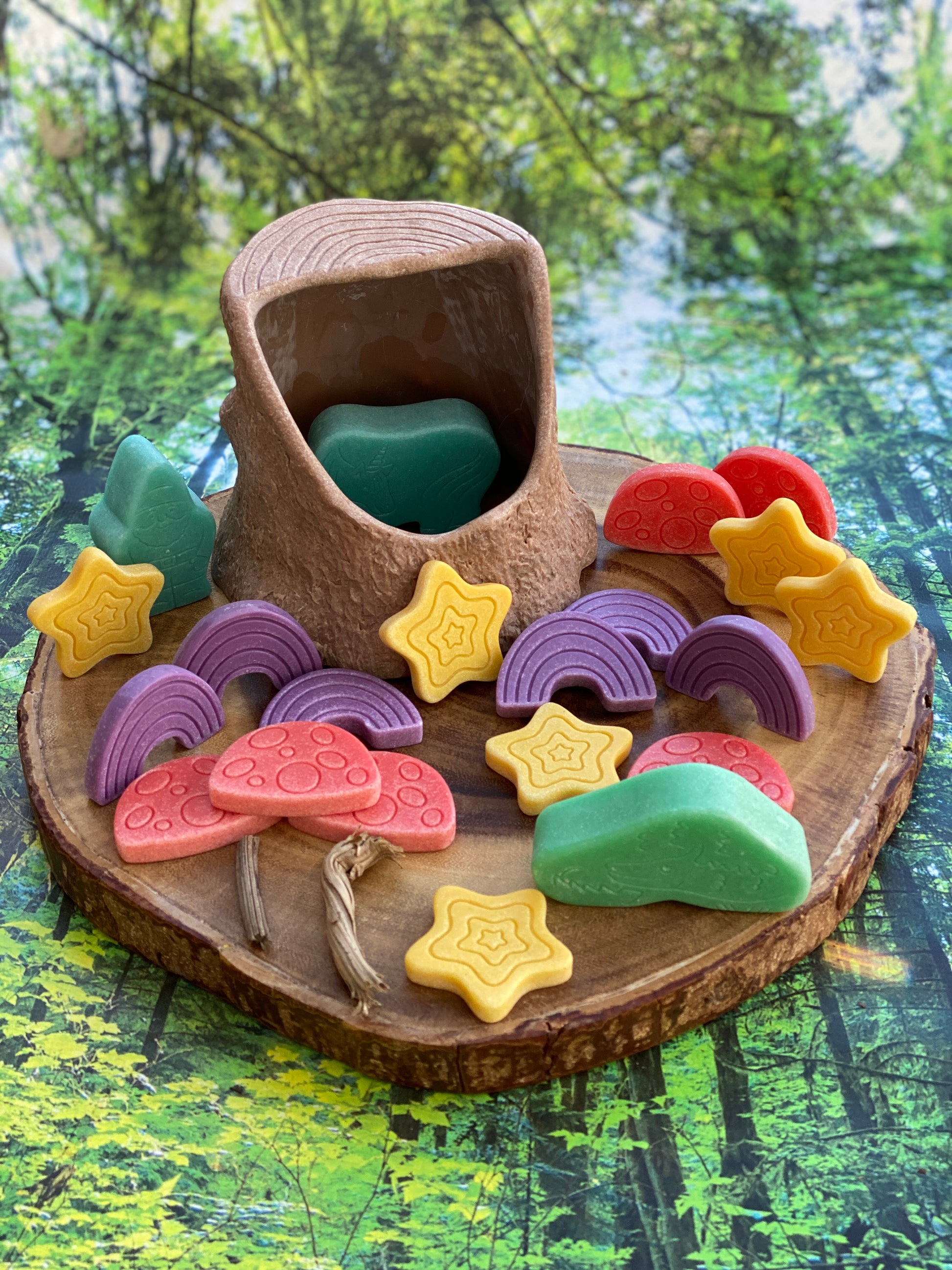 Laat kinderen hun eigen magische werelden creëren met deze betoverende sensorische stenen. Van glinsterende sterren tot sprookjesachtige paddenstoelen en gewelfde regenbogen – deze stenen nodigen uit tot fantasierijk spel, bevorderen creativiteit en stimuleren taalontwikkeling.