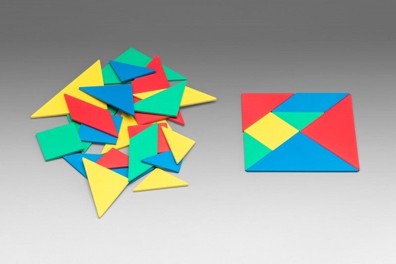 - Zeven delen samenvoegen tot een vierkant - puzzeleffect - bevordert doorzettingsvermogen en geduld.