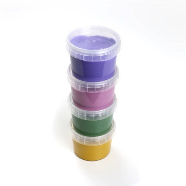 Een mooie set vingerverf in de kleuren groen, geel, paars en roze. Deze vingerverf is geheel vervaardigd uit planten en mineralen. Hierdoor is deze vingerverf een natuurlijk product. Makkelijk afwasbaar.