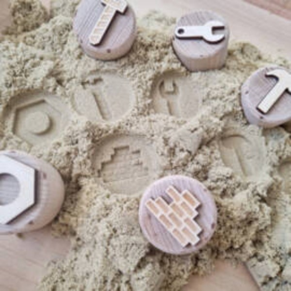 Maak met de 6 verschillende constructie-varianten je eigen afdrukken. Voeg er nog bouwvoertuigen toe. Te gebruiken in kinetisch zand en klei.
