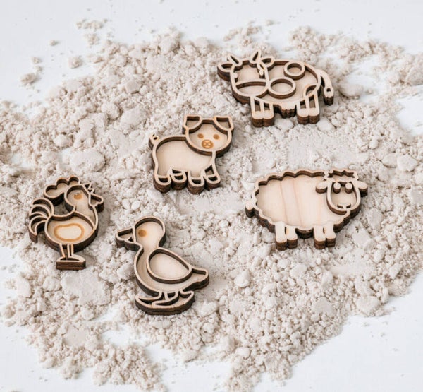 Een mooie set mini vulvormen van boerderijdieren. Past uitstekend bij sensorisch spel en is een mooie aanvulling voor bij de speelbak. Laat je kind deze vulvorm vullen met rijst, sensorische parels of andere materialen. Verder kun je er afdrukken mee maken in kinetisch zand.