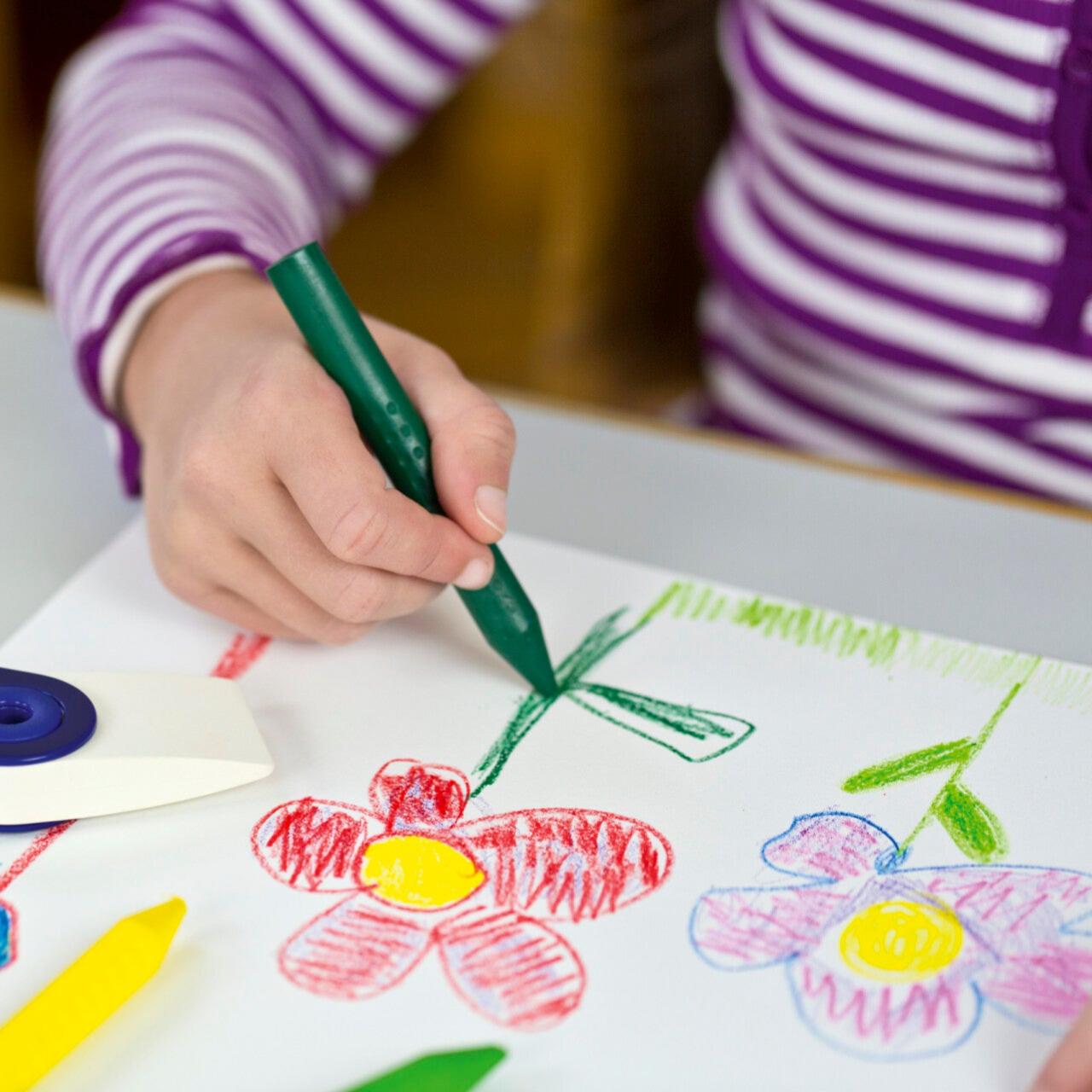 De waskrijtjes kruimelen en smeren niet en zijn uitgumbaar. Hierdoor is het dus makkelijk te verwijderen indien er gekleurd wordt op een plaats buiten het blaadje.