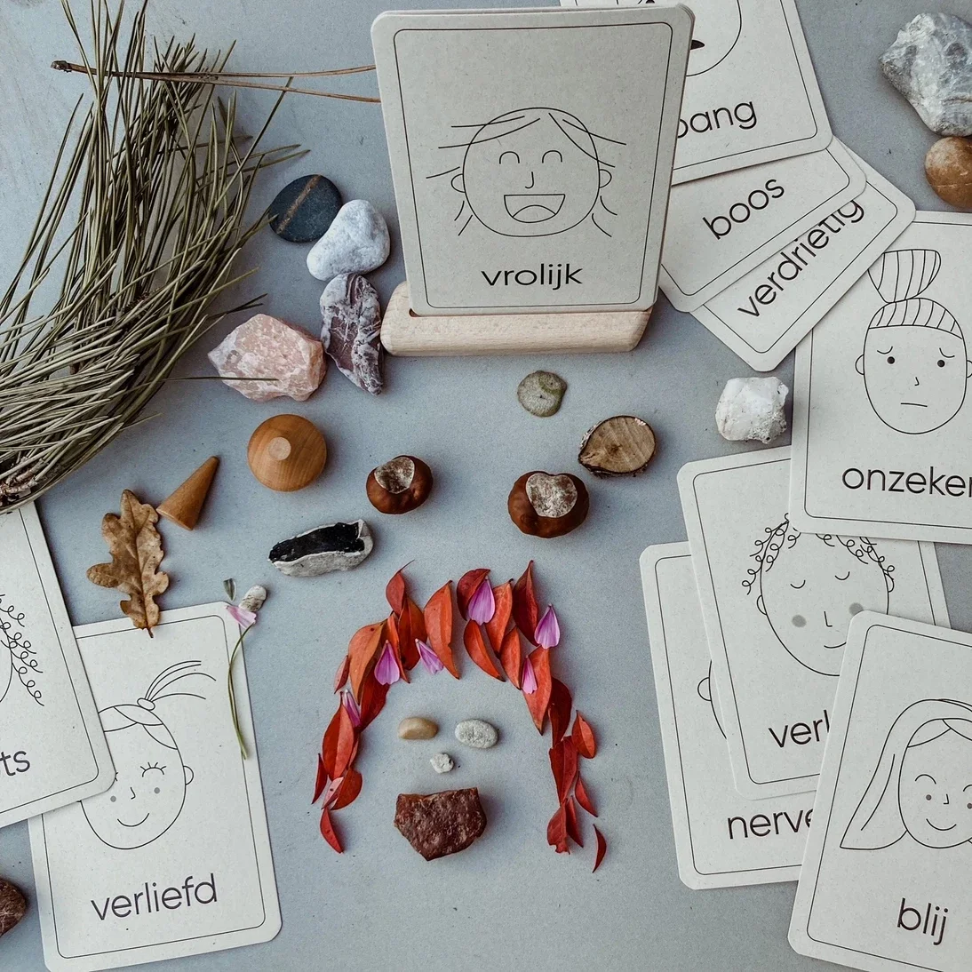 De emotie flashcards hebben een prachtige uitstraling doordat ze worden gedrukt op stevig 295 grams PaperWise papier wat gemaakt wordt van gerecycled landbouwafval.