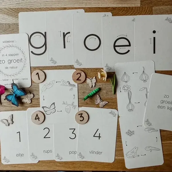 Wildebras - Flashcards | Levensloop | Set | Kip - Kikker - Vlinder - Narcis