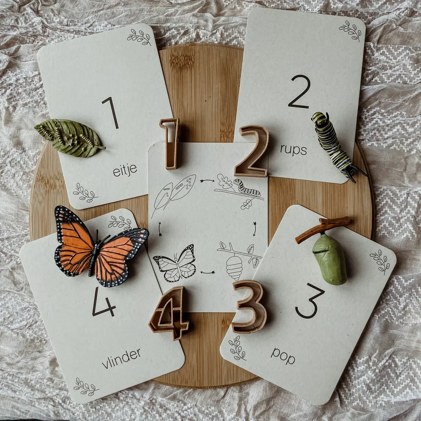 De lifecycle vlinder flashcards illustreren de groei van de natuur in 4 stappen. Gebruik de kaarten tijdens het spel van je kind en learn through play!