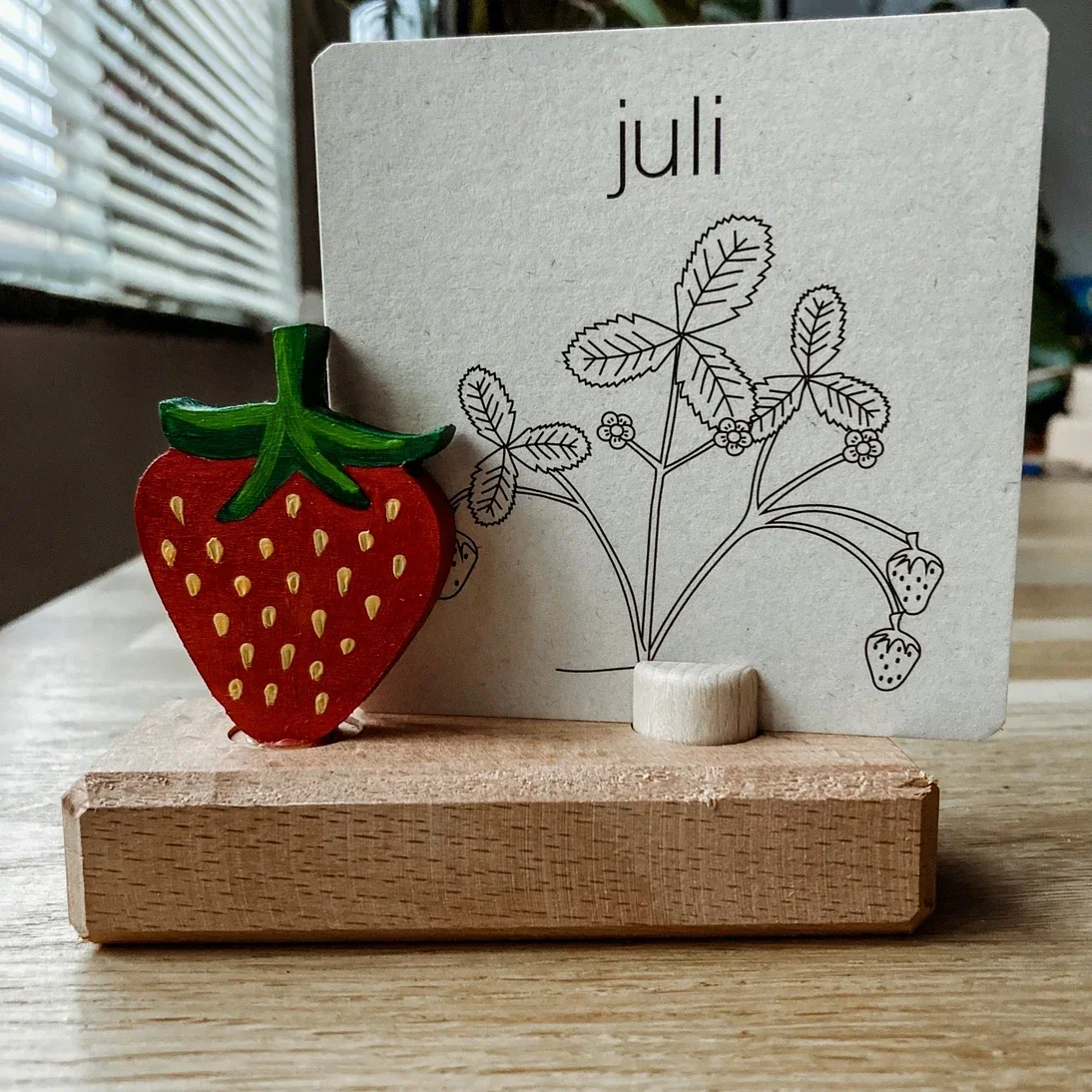 De prachtige set maandkaarten voor op de seizoenstafel of in de jaarring. De set bestaat uit 12 dubbelzijdig bedrukte kaarten van 9x9 cm. Het lettertype is goed leesbaar voor kinderen.