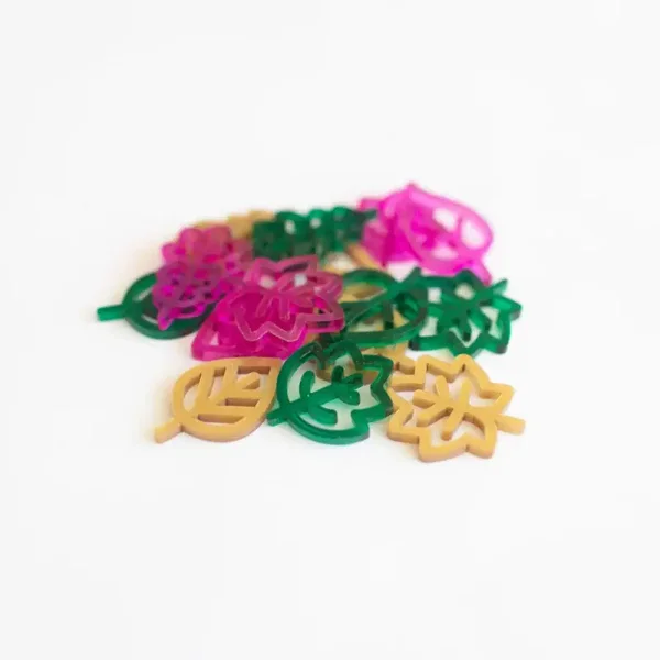 Een prachtige set acryl herfstbladeren in prachtige kleuren. Perfect voor sensorisch spel als toevoeging aan speelzand, speelrijst of de natuurlijke speelklei. Ook kunnen deze herfstbladeren in water. Geweldige combi met het magisch poeder. Een setje bestaat uit 15 herfstbladeren.