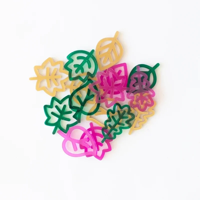 - Een set bestaat uit 15 herfstbladeren in 3 verschillende kleuren.