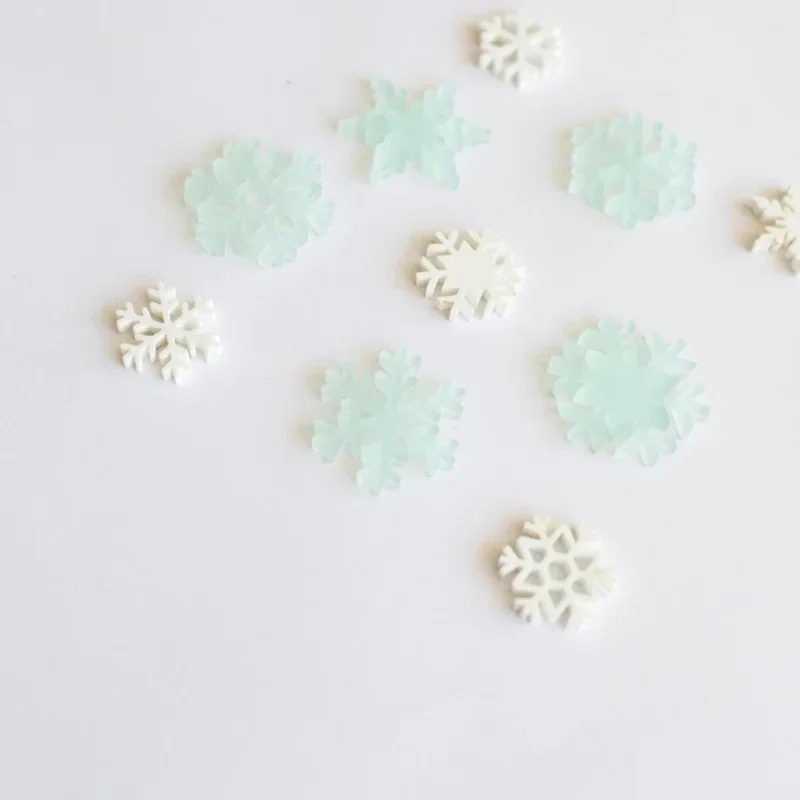 Een prachtige set acryl sneeuwvlokken in een prachtige winterse kleuren. Perfect voor sensorisch spel als toevoeging aan speelzand, speelrijst of de natuurlijke speelklei. Ook kunnen deze figuurtjes in water. Geweldige combi met het magisch poeder. Een setje bestaat uit 10 sneeuwvlokken.