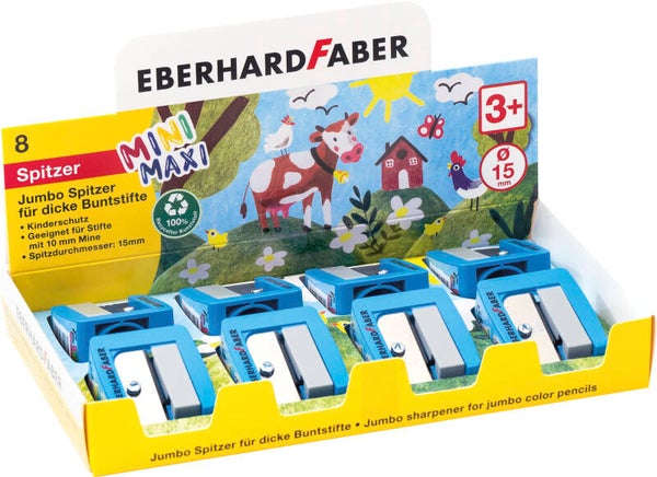 Maak het slijpen van dikke potloden eenvoudig en veilig met de Eberhard Faber Jumbo Puntenslijper! Speciaal ontworpen voor potloden met een diameter van 15 mm, zorgt deze slijper voor soepel en schoon slijpen zonder moeite.