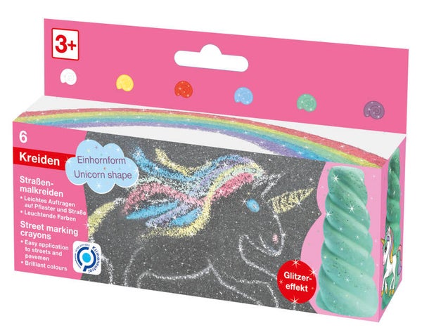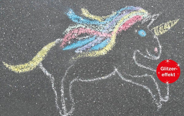 Breng magie naar buiten met het Eberhard Faber Glitter Eenhoorn Stoepkrijt! Deze set van 6 spiraalvormige krijtjes in de vorm van een eenhoorn voegt sprankelende kleuren toe aan elke stoep of asfalt. Met glitters in de kleuren wit, geel, groen, rood, blauw en paars wordt elk kunstwerk een betoverend geheel. De krijtjes zijn gemakkelijk aan te brengen en ideaal voor kleine handjes.