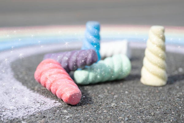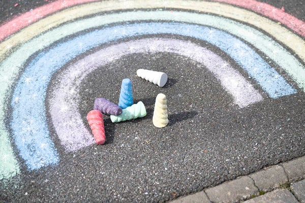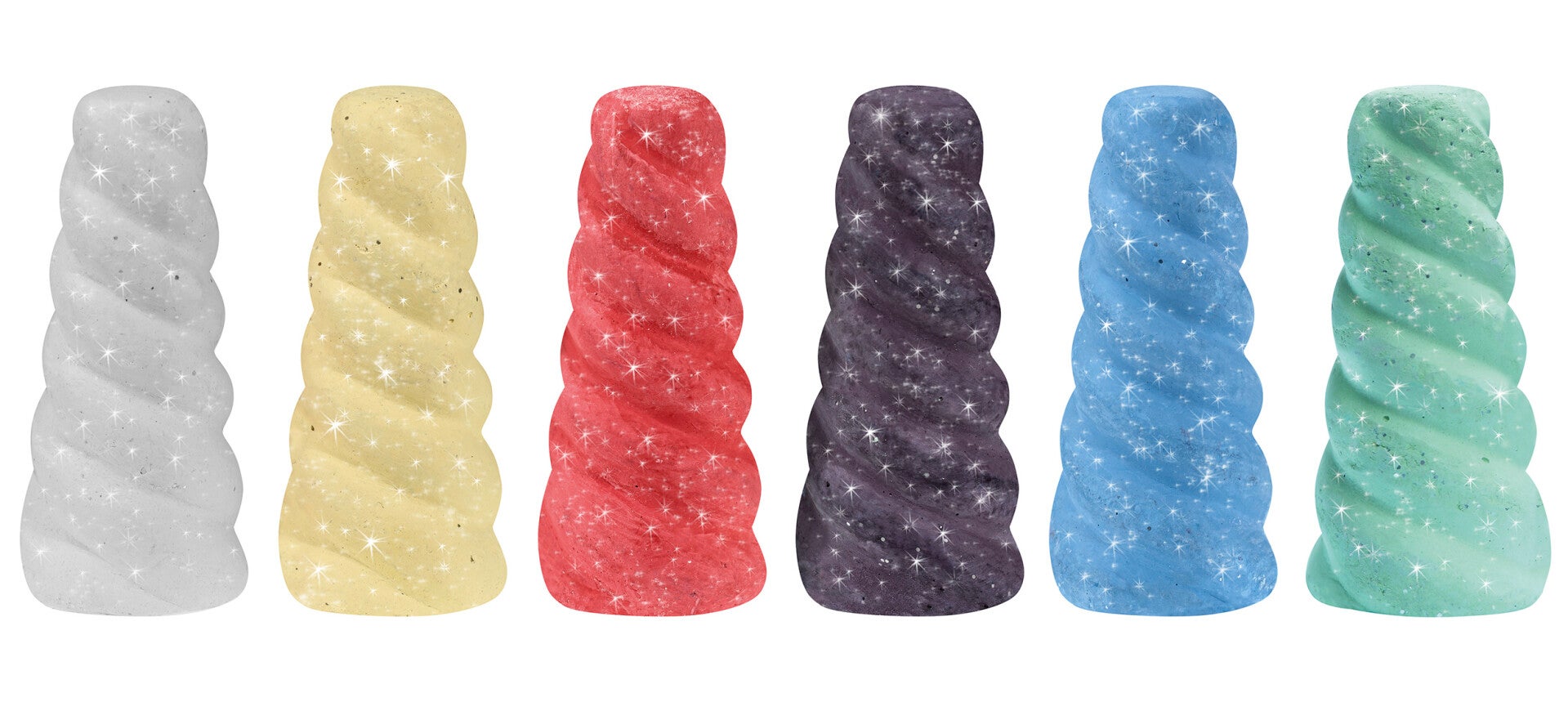 - Set van 6 spiraalvormig stoepkrijt met glitters.