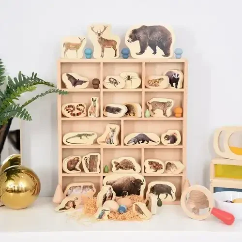 Een compacte en opgeruimde opbergoplossing waarmee je kind voorwerpen op kleur of vorm kan sorteren en tentoonstellen. Perfect te combineren met diverse loose parts.
