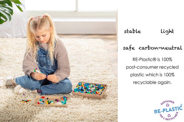 - RE-Plastic® is 100% post-consumer gerecycled plastic dat altijd 100% recyclebaar is.