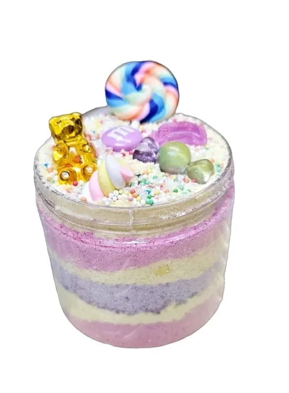 - Gemaakt van citroenzuur, bakingsoda, maizena, zeezout, eventueel (arbeidsvriendelijke) Mica poeder, bio glitter, thema spulletjes, steentjes, bloemblaadjes